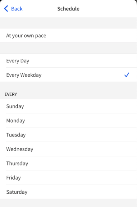 Schedule - pick your schedule. Pick read every day or every weekday pick one of those. Or you could customize by reading only certain days of the week.