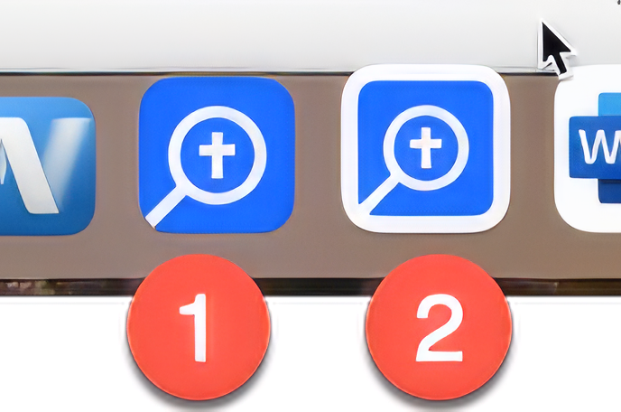 You'll now see an icon in the Dock on your Mac that looks like the Logos logo with white trim around a slightly smaller logo instead of the larger logo with no white trim (see comparison image above).