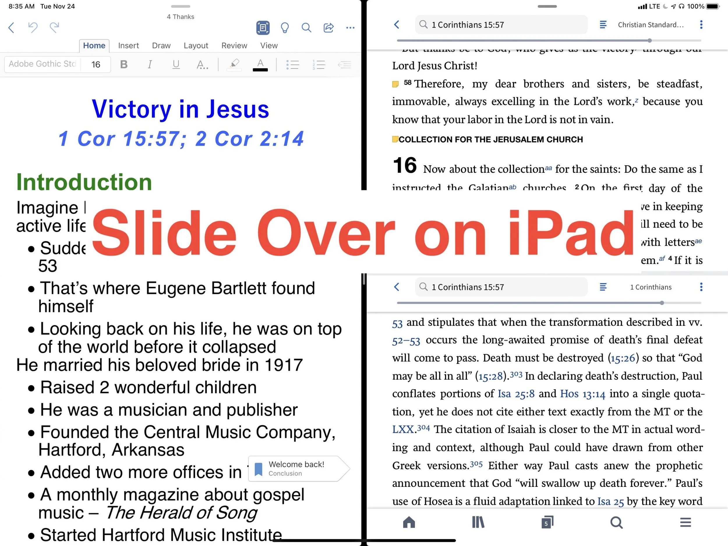 Do you use Slide Over on iPad as you study the Bible? If not, you should because it can increase productivity. Take a look at the following tips for effectively using Slide Over on iPad as you study the Bible or do other tasks on your iPad.